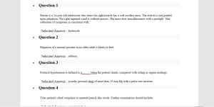 - Question: A pulsation that is diminished to the point of being barely palpable would be graded as: