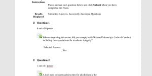 - Question: When completing this exam, did you comply with Walden University’s Code of Conduct including the expectations for academic integrity?