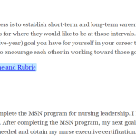 A common practice for leaders is to establish short-term and long-term career goals. Many leaders set one-year and five-year goals for where they would like to be at those intervals. Share a short-term (one-year) and/or a long-term (five-year) goal you have for yourself in your career trajectory. As a class, we will look for opportunities to encourage each other in working toward those goals!Peer Collabor...