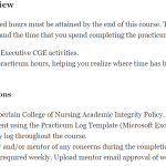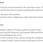 A minimum of 72 approved hours must be attained by the end of this course. The practicum log reflects the activities that you do and the time that you spend completing the practicum requirements:Describe the Nurse Executive CGE activities.