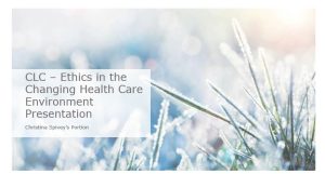 Topic 8 Assignment; CLC – Ethics in the Changing Health Care Environment Presentation