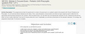 This assignment provides the opportunity to conduct a focused exam on a pediatric patient who presents with Group A Streptococcal Pharyngitis. You will interview Sophia Haddad and her father, Omar, using therapeutic communication and obtain enough subjective data to determine the appropriate pharmacological therapy for her condition. After the patient exam, you will select the most appropriate medication for Ms. Haddad and educate her father on how to safely administer it and care for Sophia while she is sick. If applicable, you will write a prescription for the selected medication.