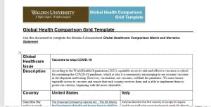 Module 6 Assignment; Global Healthcare Comparison Matrix and Narrative Statement