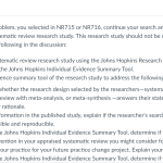COURSE NR716 Analytic Methods Instructions Using the practice problem, you selected in NR715 or NR716, continue your search and appraisal of evidence by analyzing one systematic review research study. This […]