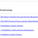 COURSE NR715 Scientific Underpinnings NR715 Week 1: Discussion | The Theory-Practice Gap and Nursing Research NR715 Week 2: Discussion | The DNP-Prepared Nurse and the Global Burden of Disease NR715 […]