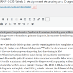 COURSE NRNP-6635 Psychpathology Diag Reasoning Complete and submit your Comprehensive Psychiatric Evaluation, including your differential diagnosis and critical-thinking process to formulate a primary diagnosis. Incorporate the following into your responses […]