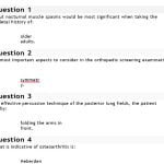 COURSE NURS 6512 Advanced Health Assessment and Diagnostic Number of Questions: 1 -101 Questions Question: The reliability of health-related findings and observations is the responsibility of the: Question: Inquiry about nocturnal muscle […]